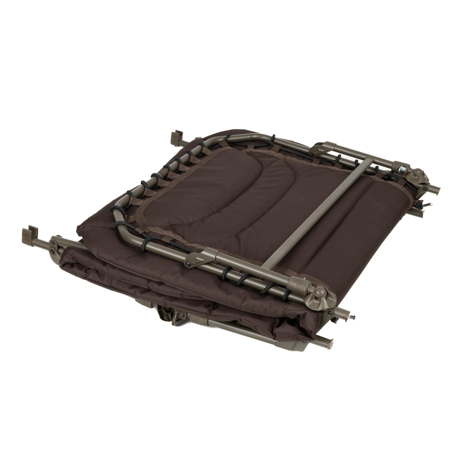 • Le système de sangle et de boucle permet de ranger le bedchair de manière compacte, même avec un duvet dessus.