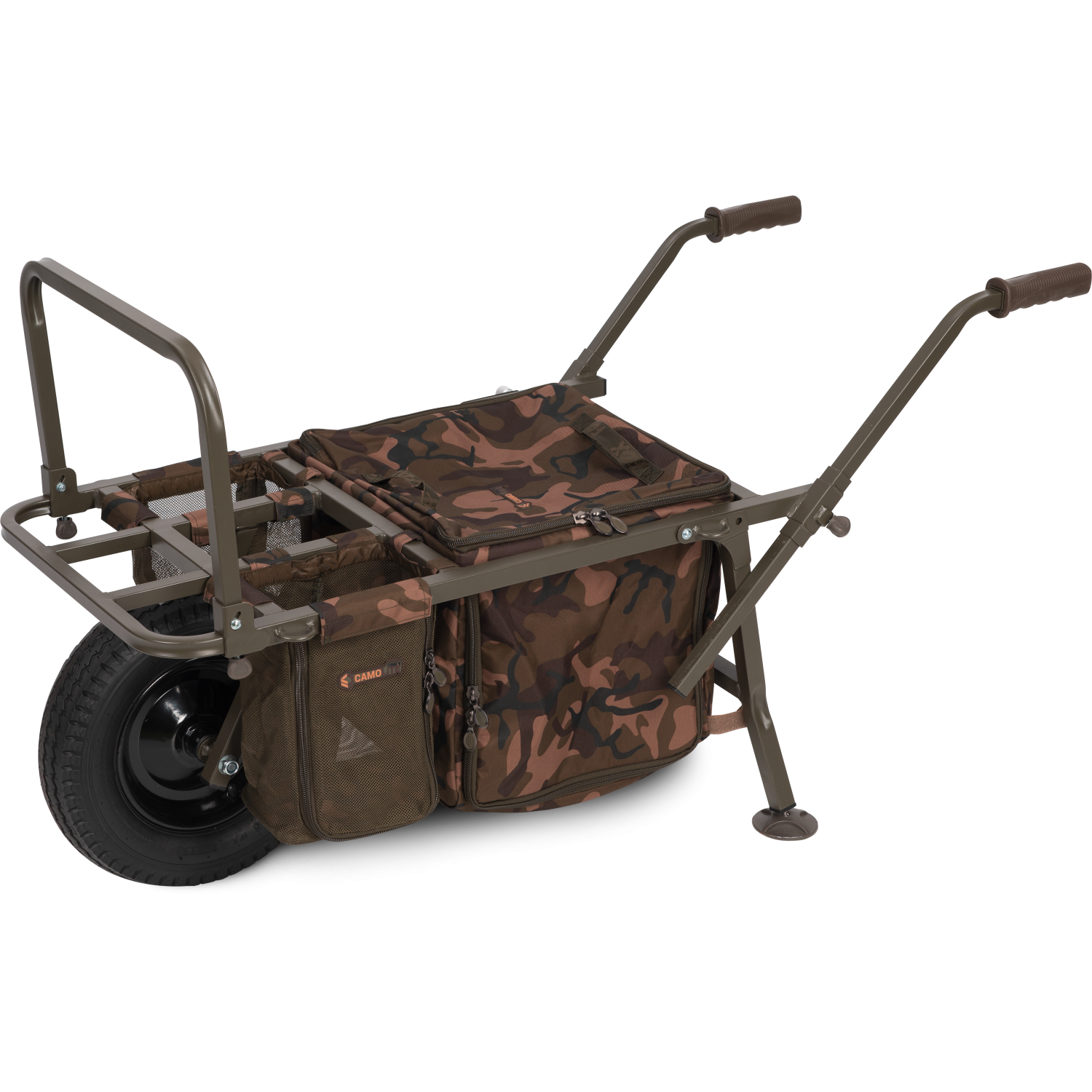 Ce chariot Explorer unique a été conçu pour être l'un des chariots de pêche les plus polyvalents jamais commercialisés. Le très compact Explorer peut s’adapter aussi bien pour des sessions de journées que pour une utilisation lors de longues sessions où des bedchairs et du matériel supplémentaire sont nécessaires. Le concept de l'Explorer est que lors de courtes sessions, le pêcheur peut laisser la majorité de son matériel sur le chariot et pêcher 'depuis le chariot', ce qui permet de ranger et de déplacer rapidement sans trop de tracas. Cependant, grâce à son design astucieux avec le support de sac avant extensible, le chariot peut être rapidement converti pour créer plus d'espace pour transporter du matériel supplémentaire tel qu’un bedchair. Cette conversion redistribue également le poids lorsque des objets supplémentaires sont ajoutés pour garantir l’équilibre du chariot. L'Explorer est équipé de nombreuses fonctionnalités et est livré avec un sac central Under Barrow, muni du motif Fox Camo, ainsi que deux poches de rangement type filet situées de chaque côté, idéales pour ranger des objets tels qu'un réservoir d’eau de 5 litres et/ou des appâts. L'Explorer a été conçu pour être le chariot parfait pour des courtes sessions de jour. Le sac central et les deux poches de rangement disposent de fermetures éclair sur leurs côtés, permettant un accès rapide et facile sans avoir à décharger le chariot. Le Mk2 a été mis à jour avec notre nouveau tissu camouflage de plus grande taille et des poignées réglables en hauteur.