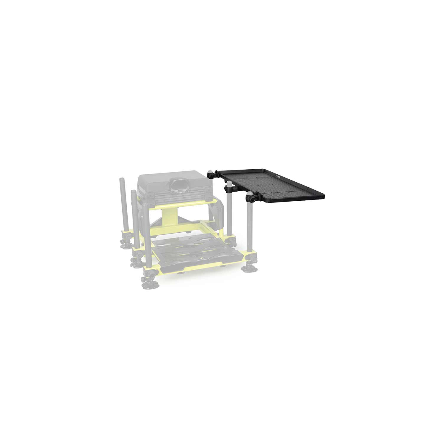 - ✅ Attaches Amovibles et Réglables : Les deux blocs de fixation peuvent être déplacés le long du rebord pour s'ajuster parfaitement à l'écartement des pieds de n'importe quel modèle de station de pêche.