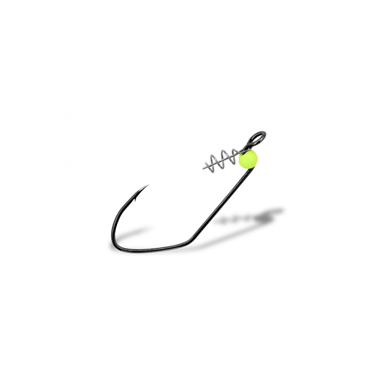 Fixation par ressort Helix Snap : Le leurre est maintenu par le tire-bouchon original "Helix", doté d'une perle ultraviolette fixe située sur le déport (le "step") de l'hameçon.