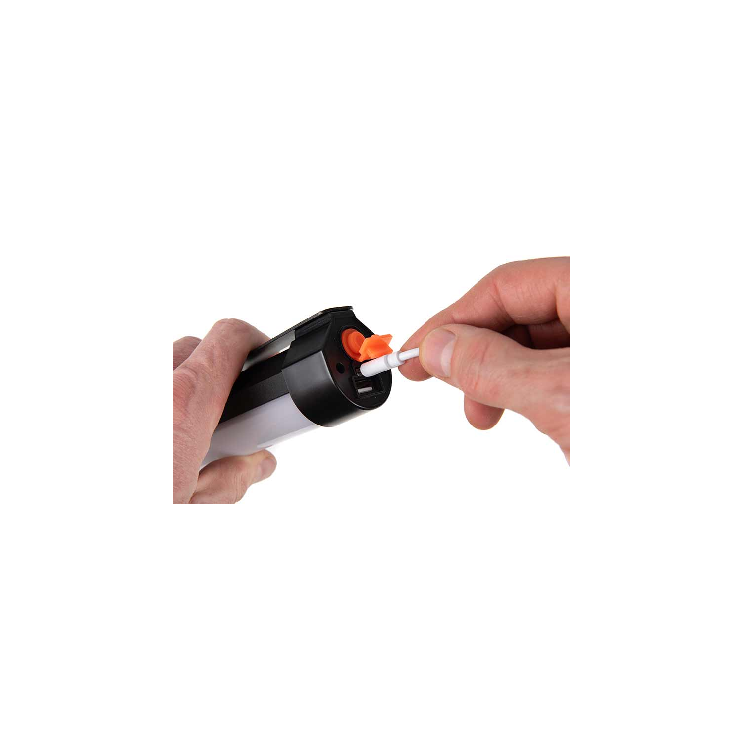 Bande lumineuse LED télécommandée, avec fixation magnétique et plaque métallique pour suspension dans un biwy. Filetage pour adaptateur photo, permettant une utilisation comme éclairage de prise de vue. LEDs blanches, vertes et rouges. Recharge via USB-C + port USB de sortie pour utilisation en batterie de secours.