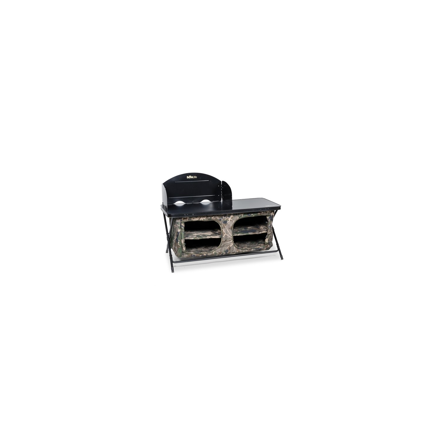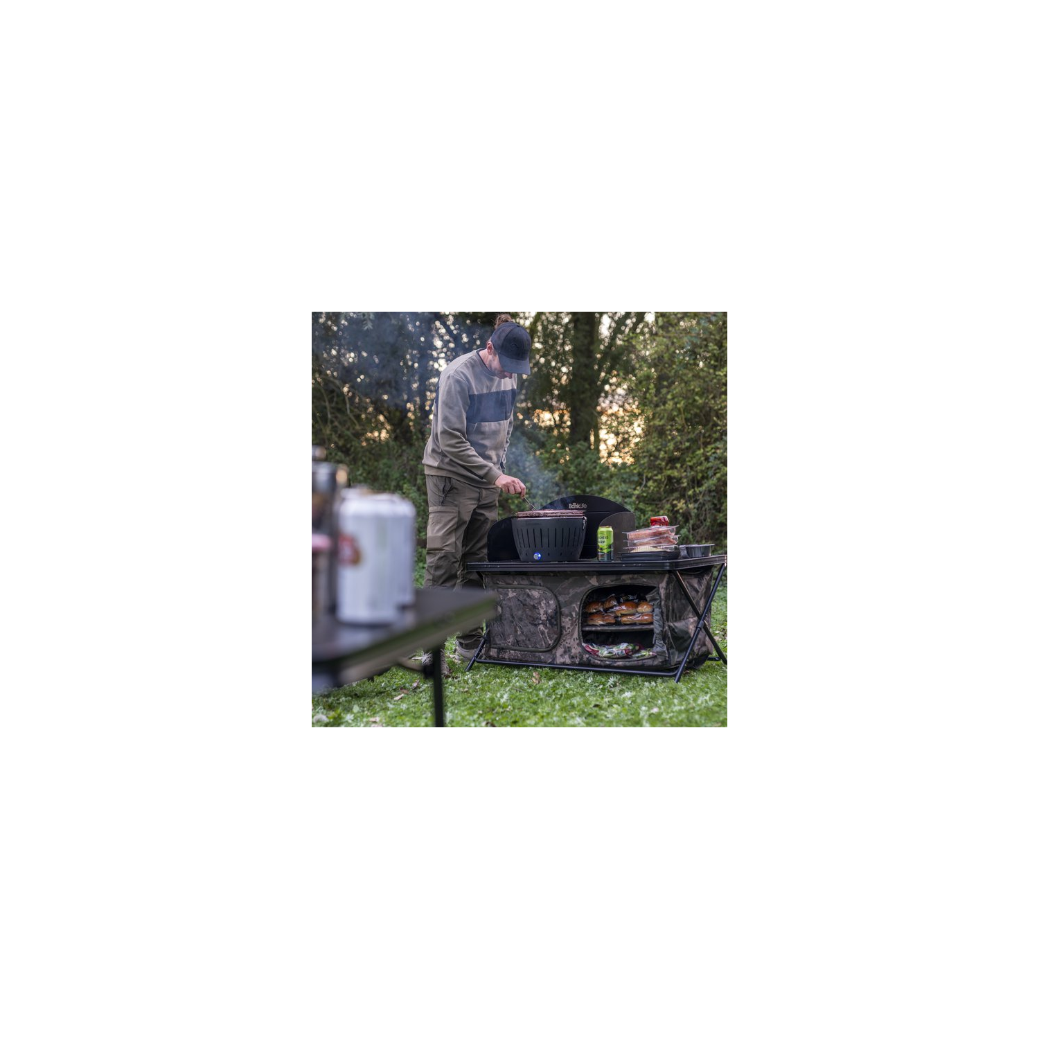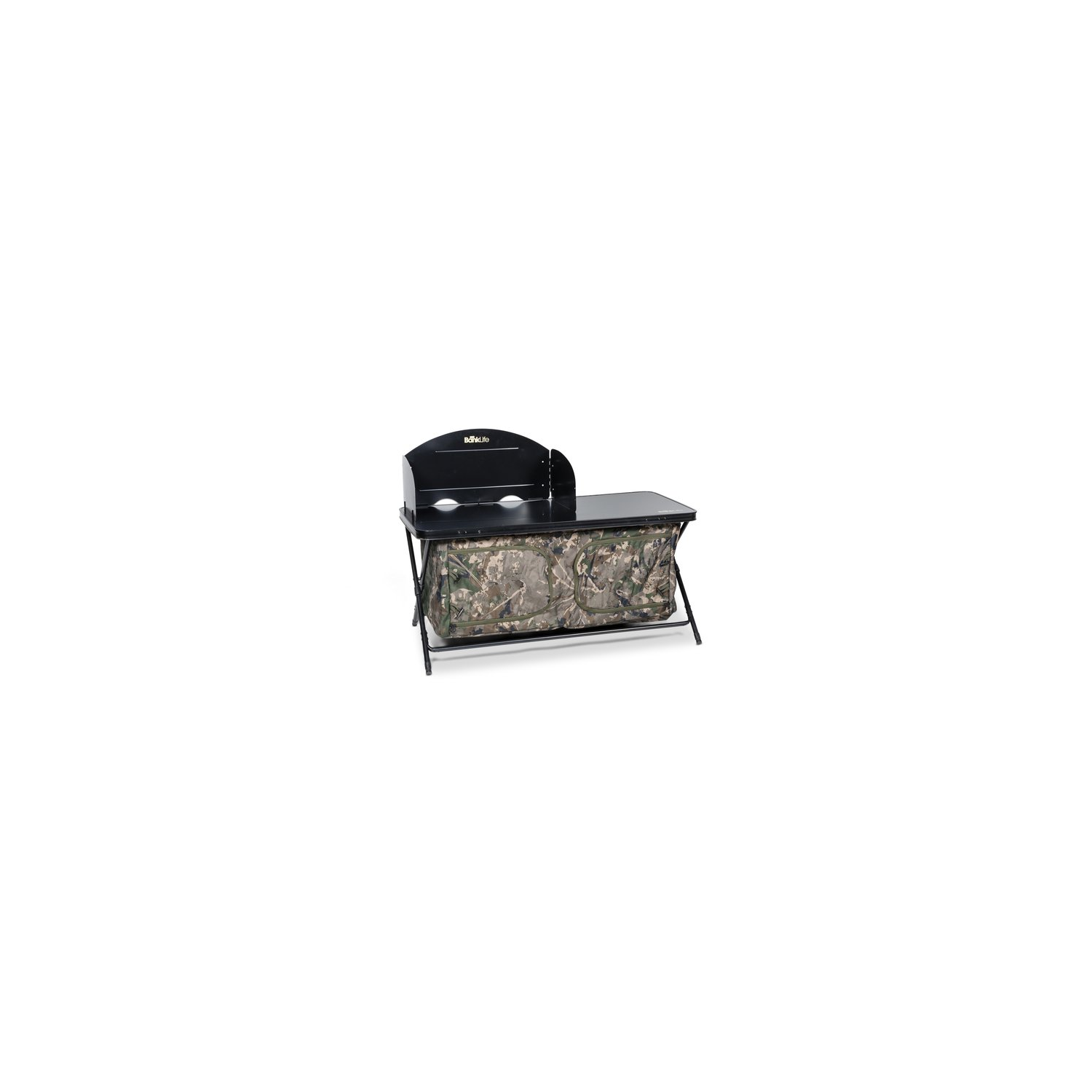 Parfait pour les sessions conviviales et pour cuisiner avec créativité, le Bank Life Cook Station est équipé d’un pare-vent rabattable à trois côtés, monté sur des goupilles, offrant une zone protégée du vent pour bouilloires et réchauds. Il empêche également les objets de s’envoler lorsqu’il est utilisé comme plan de travail.