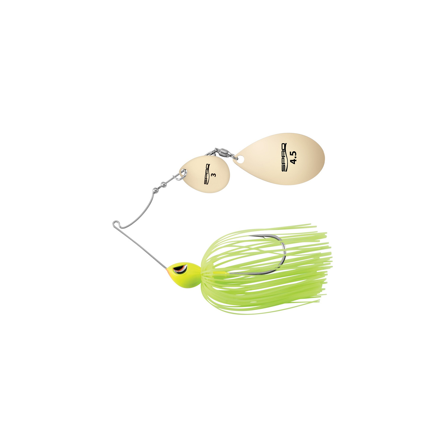 Le spinnerbait SPRO Thumper est équipé d’hameçons Gamakatsu avec revêtement Nano Alpha pour une durabilité accrue et une efficacité optimale. Chaque leurre est doté d’un émerillon à billes ainsi que de la tête SPRO Mean Eye, idéale pour pêcher dans les obstacles durs tels que les rochers et le bois immergé. Il est équipé de palettes Colorado et Indiana personnalisées à forte vibration, avec les tailles imprimées directement sur chaque palette. Ce spinnerbait est parfaitement adapté à la pêche en eau trouble et teintée.