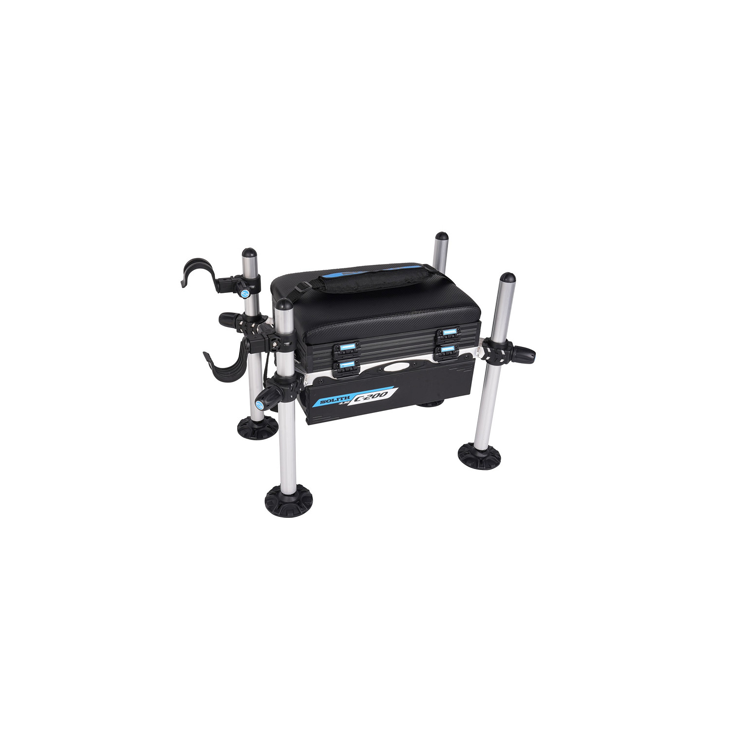 Compacte et fonctionnelle, cette station propose de nombreuses possibilités de rangement, idéale aussi bien pour la pêche au coup que pour la pêche au feeder. Chaque modèle comprend un large compartiment de base situé sous le cadre, et se distingue par différentes configurations de tiroirs selon la version. L’assise rembourrée assure un excellent confort, tandis que la sangle d’épaule rembourrée et amovible facilite le transport. Deux supports de canne sont également inclus gratuitement avec chaque station. La Solith 4x36 est disponible en cinq versions : trois sans dossier et deux avec dossier rabattable. Aperçu des modèles : Solith 4x36 -200 : 1 compartiment de base (130 mm) + 1 compartiment standard (40 mm) Solith 4x36 -250 : 1 compartiment de base (130 mm) + 1 compartiment standard (40 mm) + dossier rabattable Solith 4x36 -400 : 1 compartiment de base (130 mm) + 1 compartiment standard (40 mm) + 2 tiroirs frontaux Solith 4x36 -450 : 1 compartiment de base (130 mm) + 1 compartiment standard (40 mm) + 2 tiroirs frontaux + dossier rabattable Solith 4x36 -500 : 1 compartiment de base (130 mm) + 1 compartiment standard (40 mm) + 2 tiroirs frontaux + 1 tiroir latéral