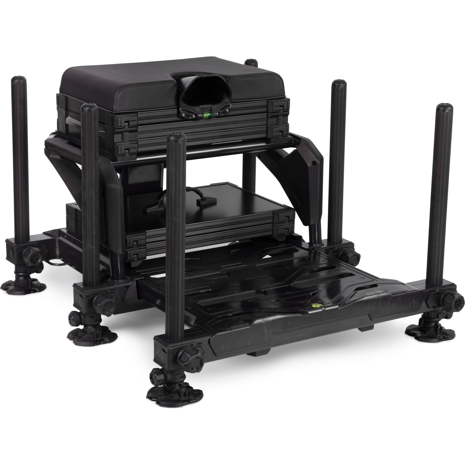 Atteignez une stabilité absolue avec la Matrix S36 Pro Black Edition, l'évolution ultime de notre station la plus vendue. Équipée de pieds extensibles de 36 mm avec revêtement antidérapant, cette version Pro a été intégralement modernisée : nouveau design de plaque arrière, verrouillage de repose-pied à goupille et ressort, et ergonomie de serrage accrue. Livrée avec un ensemble de rangements complet, elle est la plateforme de choix pour les compétiteurs exigeant une rigidité totale sur tous les types de terrains.