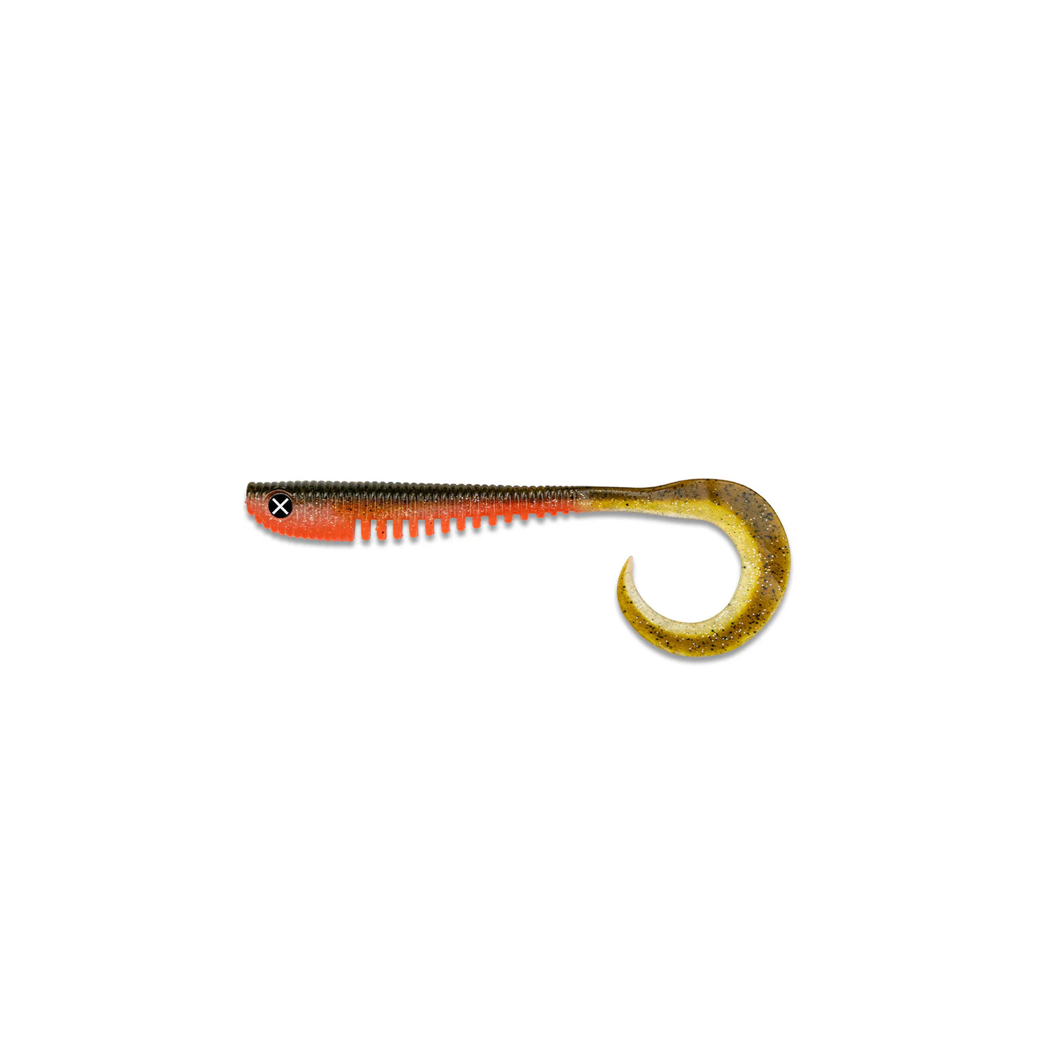 Design Anatomique : Un corps svelte doté de rainures et de stries caractéristiques, complété par un œil surdimensionné et une longue queue en faucille (curly tail).
